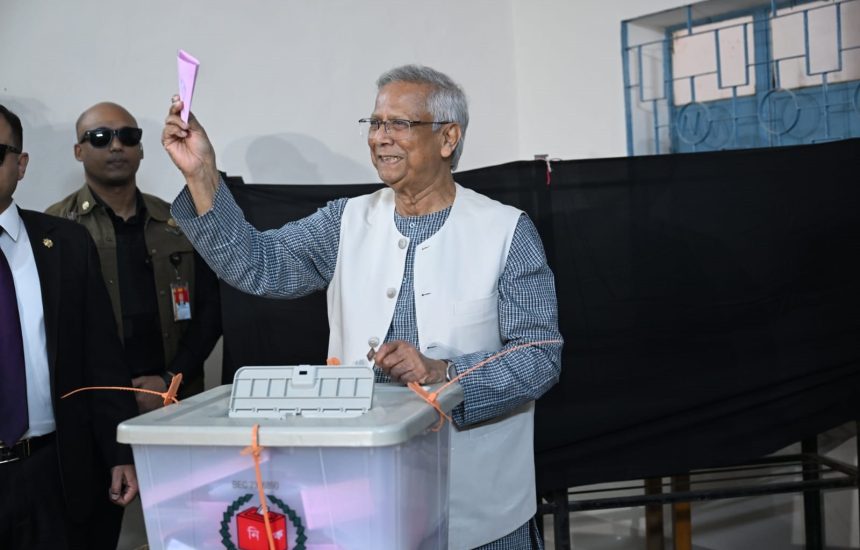 Chief Advisor Yunus votes in Dhaka, calls day ‘Start of a New Dream’